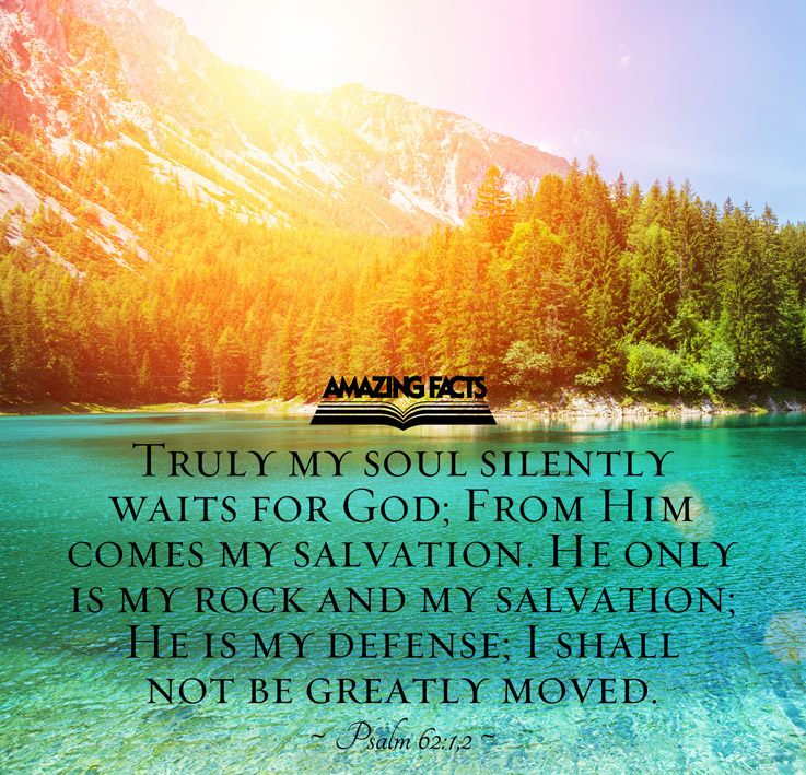 "I wait quietly before God, for my victory comes from him. He alone is my rock and my salvation, my fortress where I will never be shaken. Let all that I am wait quietly before God, for my hope is in him. He alone is my rock and my salvation, my fortress where I will not be shaken. My victory and honor come from God alone. He is my refuge, a rock where no enemy can reach me. O my people, trust in him at all times. Pour out your heart to him, for God is our refuge." Psalm 62:1-2,5-8